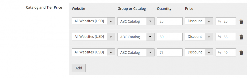 คุณจะเห็นว่าการเพิ่ม Tier price หรือระดับของราคาใน magento2 จะมีขั้นตอนคล้ายกันกับการกำหนดราคาให้กับกลุ่มลูกค้า เพียงแต่การตั้งระดับราคาจะกำหนดราคาให้กับลูกค้ากลุ่มเดียวกันแต่จำนวนสินค้าในช่อง Quantity แตกต่างกัน ซึ่งหากคุณต้องการตั้งระดับราคาให้กับกลุ่มลูกค้าแต่ละกลุ่มแตกต่างกันไป ก็สามารถทำได้เพียงระบุกลุ่มและจำนวนสินค้าให้ต่างกันเท่านั้นเอง